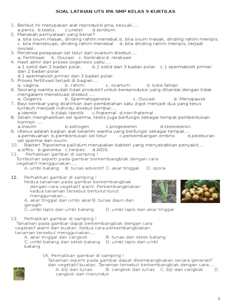 Soal Latihan Uts Ipa Smp Kelas 9 Kurtilas Murid